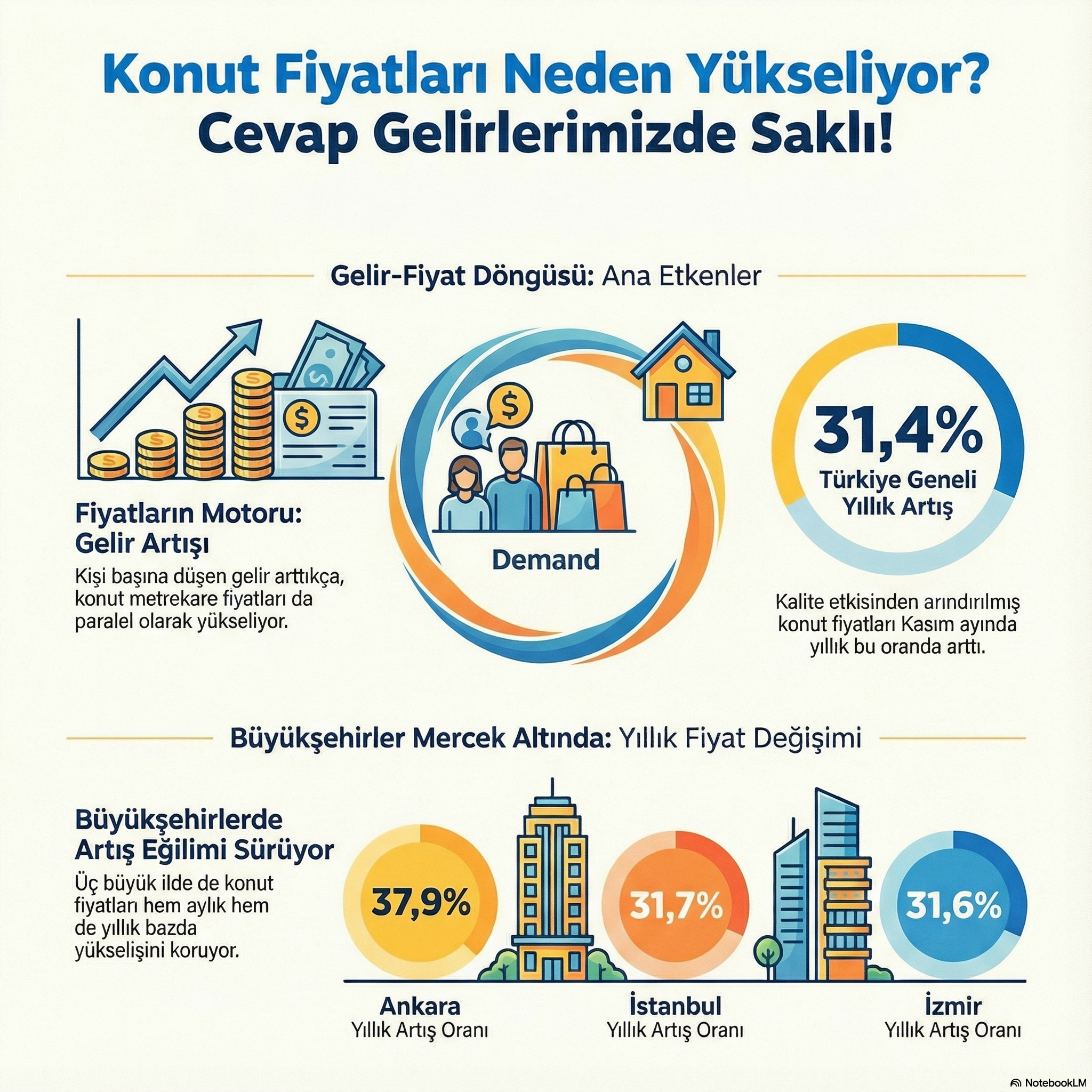 Konut piyasasında fiyat oluşumunu etkileyen temel unsurların başında gelir düzeyi geliyor. Türkiye genelinde gelir artışı ile konut fiyatları arasındaki güçlü ilişki, son verilerle bir kez daha görünür hale geldi. Özellikle büyükşehirlerde bu etki daha belirgin şekilde hissediliyor.