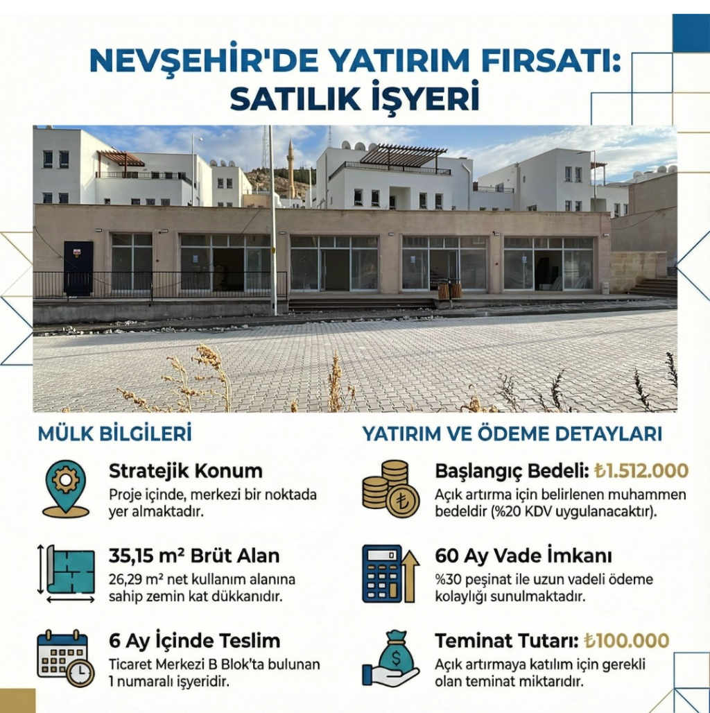 Nevşehir Merkez’de 35,15 m² İşyeri Satışta